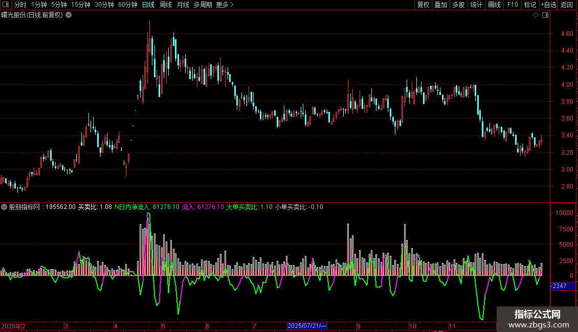 流入:IF (N日内净流入>REF(N日内净流入,1),N日内净流入,DRAWNULL),COLORMAGENTA,LINETHICK2;