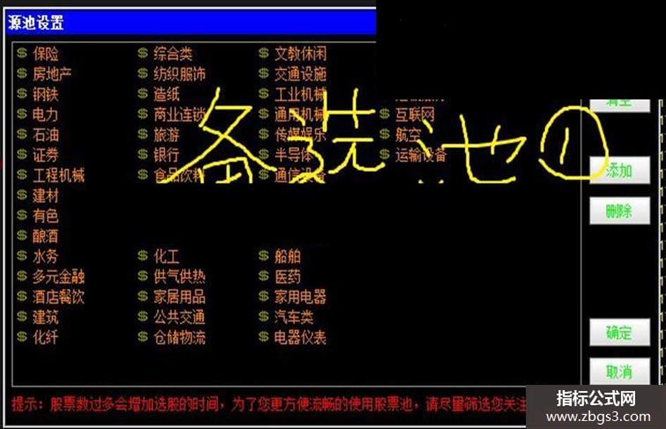 送人一条鱼,不如送人捕鱼的网。 此方法可以,就像一把锋利的兵器,能否战胜敌人,全靠自己的功力。 1, 备选池1里放进---行业指数。 2, 公式1见附件1 3, 备选池2里放进---沪深A股。 4, 公式2见附件2 5, 建好股票池,下载完整的数据,运行后, 将状态池2的股票与状态池1的行业进行比较,属于状态池1行业的股票就是-------强势板块中的强势股票。