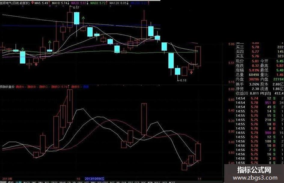没有未来函数,但很想知未来——《预测收盘价》不求100%准确,有80%就不错了 STICKLINE(XG=1,0,5,2,0),COLORYELLOW; 测收A:=IF(V*200/FROMOPEN/CAPITAL*100>5 AND C/REF(C,1)>1.03,REF(C,1)*1.099,DRAWNULL),COLORRED; XG:测收A/REF(C,1)>1.03;