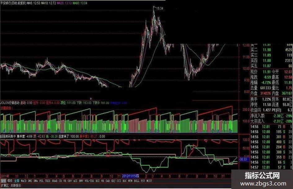 集中度2:(((A1-A2)*50/(A1+A2))+50),COLORRED,LINETHICK2;