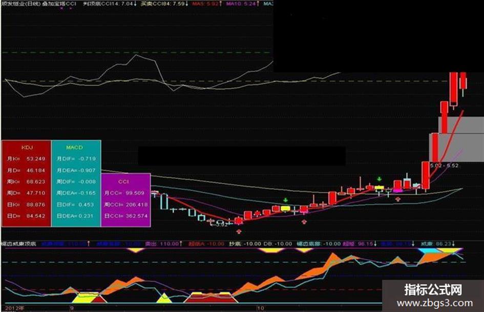 其中《一叠加CCI 模块》添加了CCI84指标线,目的是运用它上穿上虚线作为买点参考,另一条CCI14是原指标的指标线,可以方便的判断短线顶底。