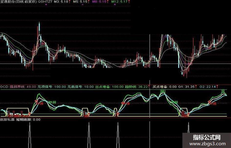 买点准备:IF(趋势线<=10,30,0),LINETHICK2,COLORYELLOW;