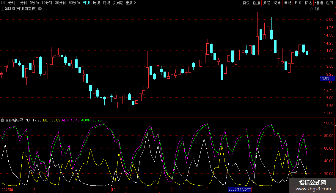 - ADX值上升表示趋势增强,下降表示趋势减弱或进入盘整;通常ADX高于20或25时认为存在明显趋势。