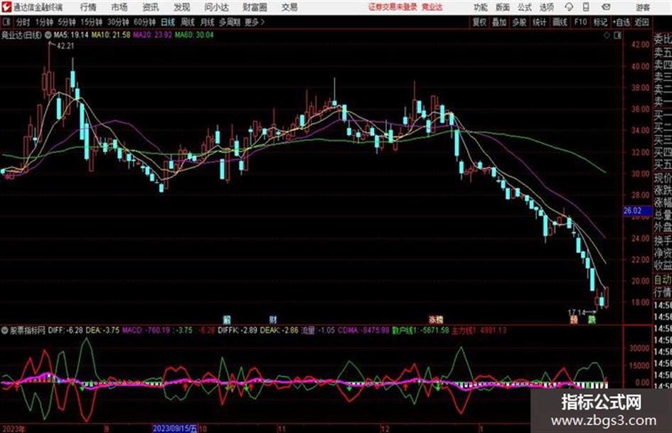 OBV赋值:如果收盘价>1日前的收盘价,返回成交量(手),否则返回如果收盘价<1日前的收盘价,返回-成交量(手),否则返回0/20000的历史累和的1日简单移动平均