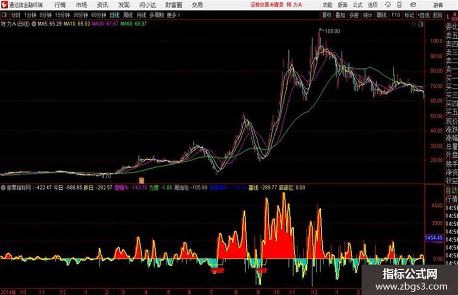 底部区:IF(趋势线<-20,-500,0),COLORYELLOW;