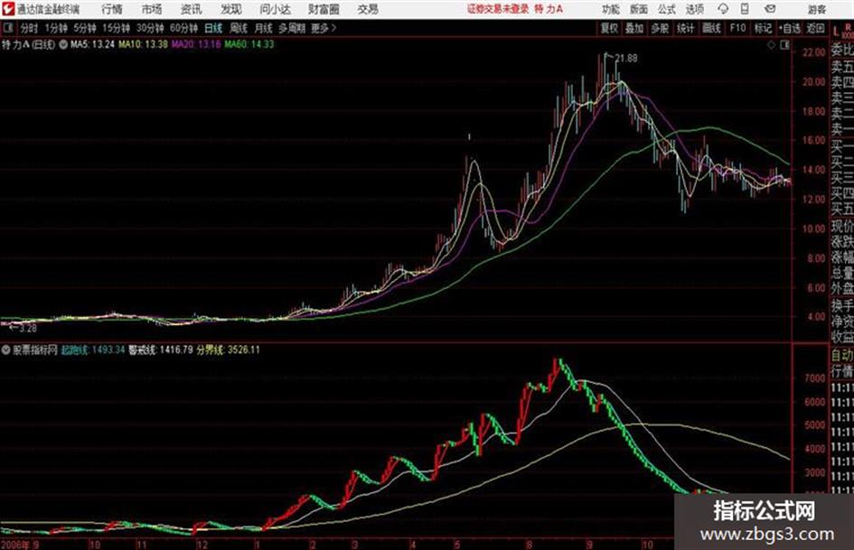 警戒线: MA(VAR1,21),COLORWHITE,LINETHICK1;