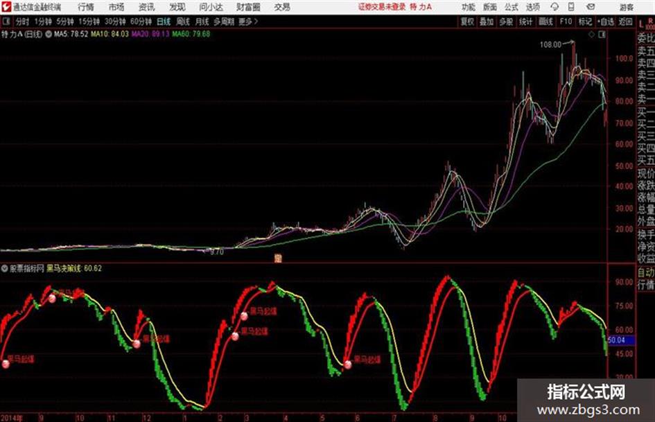 IF(黑马决策线>=REF(黑马决策线,1),黑马决策线,DRAWNULL),COLORRED,LINETHICK3;
