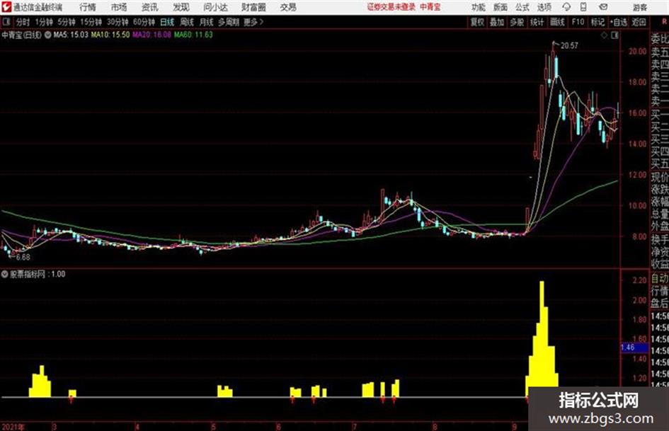 牛股:=IF(CROSS(五日贝塔,1.07) AND 十三日贝塔>1 AND COUNT(五日贝塔<1.07,3)>=2,1.1,1);