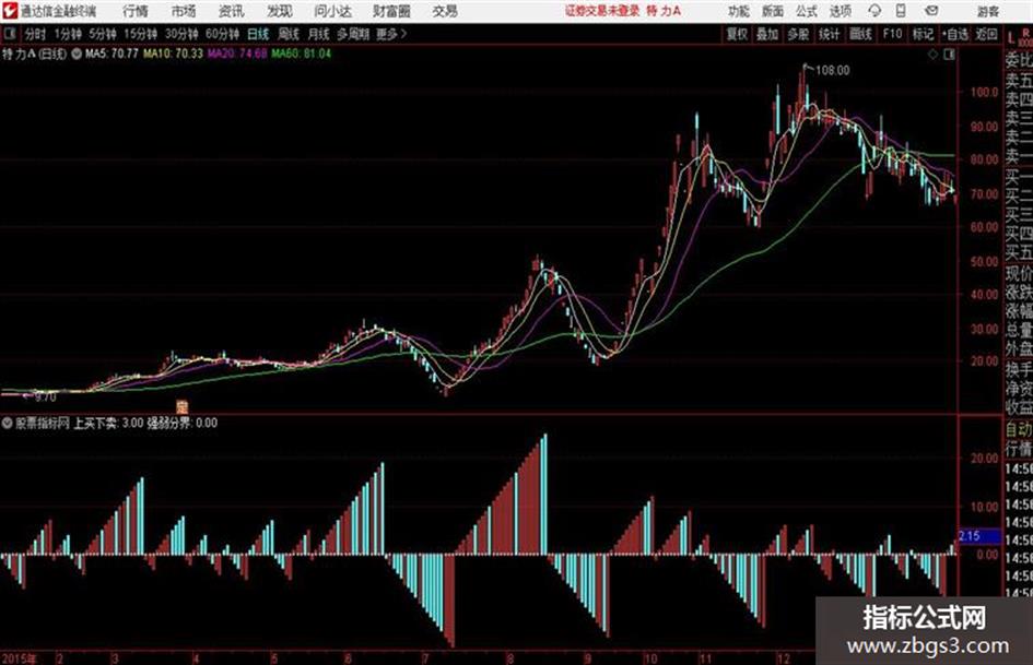 2、卖点:当“强弱分界”线下方出现第一根缘色柱线时为止赢的卖点。