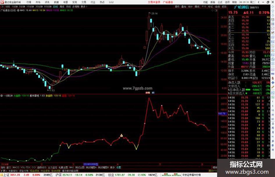 涨趋势:IF(大趋势>15 AND 大趋势>中趋势,大趋势,DRAWNULL),COLORYELLOW,LINETHICK2;