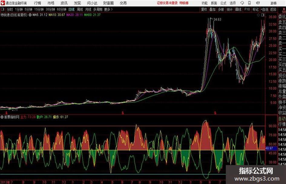 绿色散户线,红色主力线,黄操作线