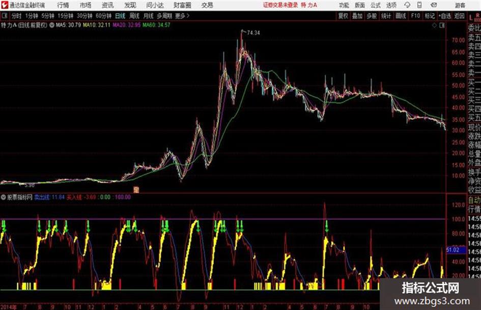 买入线:3*SMA(VARE,3,1)-2*卖出线 ,COLORRED ;