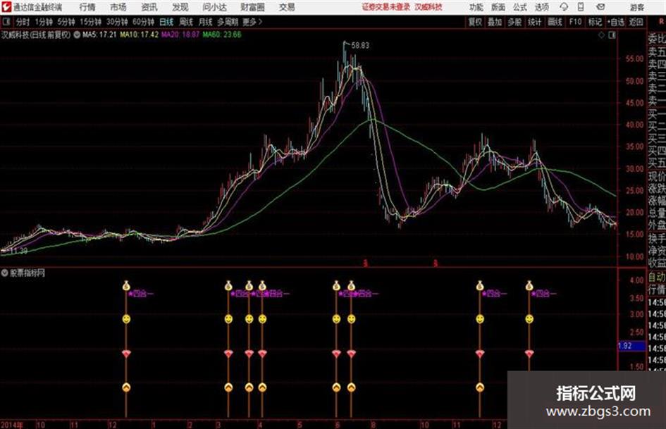这是一个将”K线买入+波段买入+MACD买入+KDJ买入“合为一体的副图指标;并设置了60日MA线以上,MACD处于多头趋势下出信号的指标;