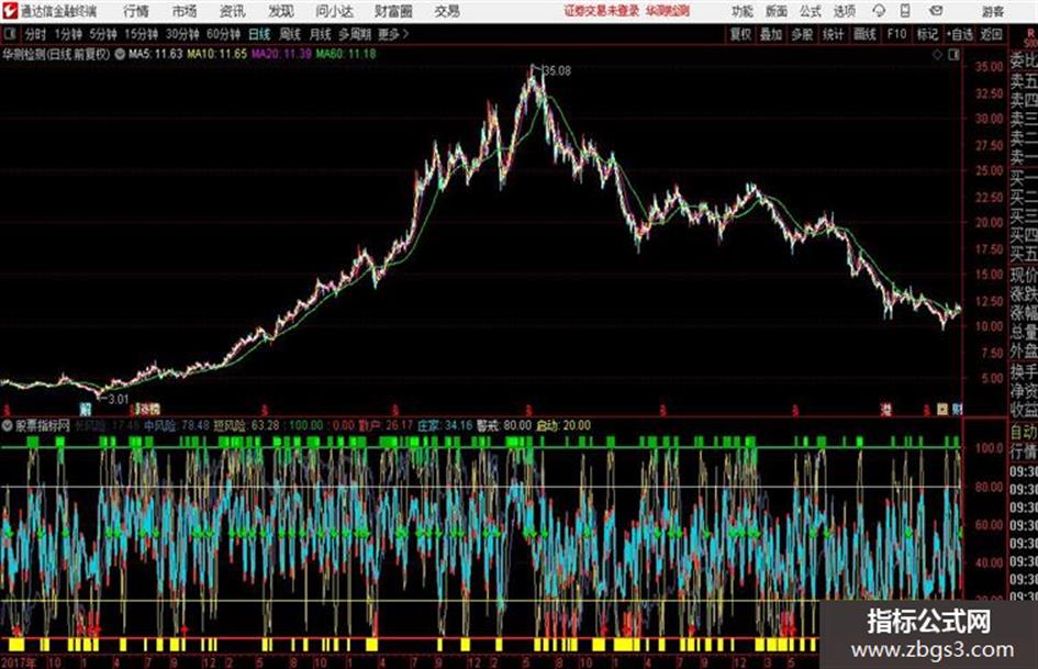 散户:EMA(((P - VAR4)/(VAR5 - VAR4))*(100),T2),LINETHICK2,COLOR3333DD;