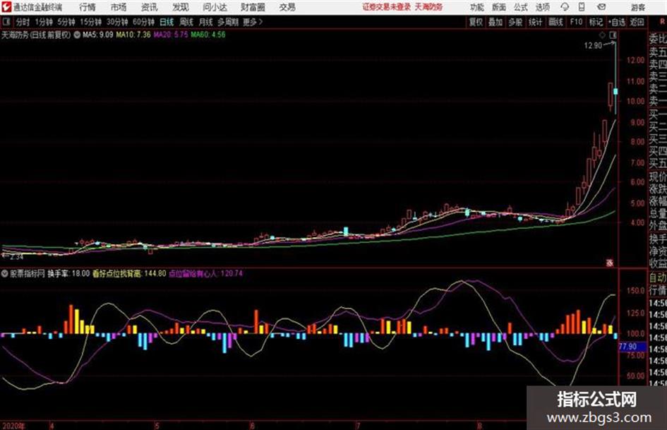 点位留给有心人:MA(TFXXS,15)+换手率;