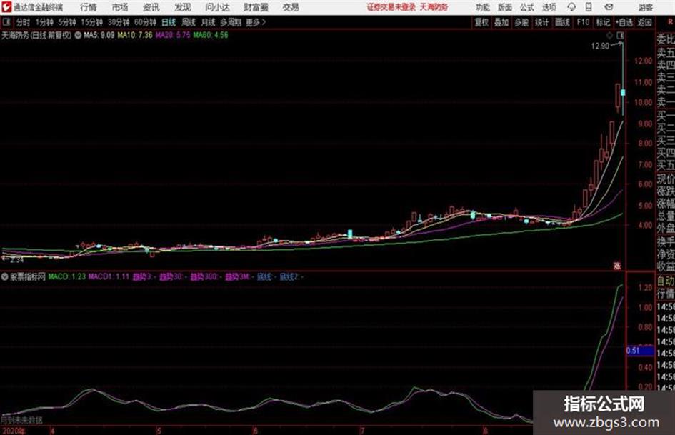 趋势300:DRAWLINE(M500 ,MACD,M700,MACD,1),POINTDOT;