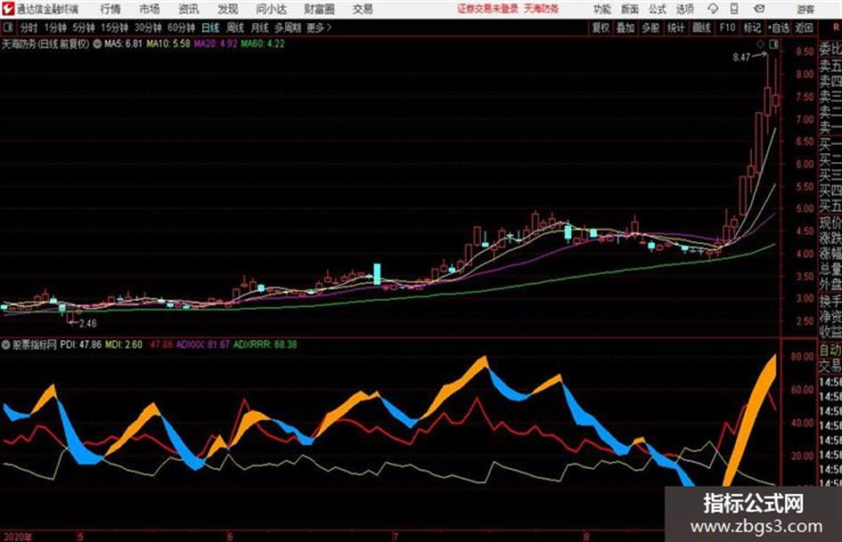 ADX:= EXPMEMA(ABS(MDI-PDI)/(MDI+PDI)*100,MM),COLORMAGENTA, ;