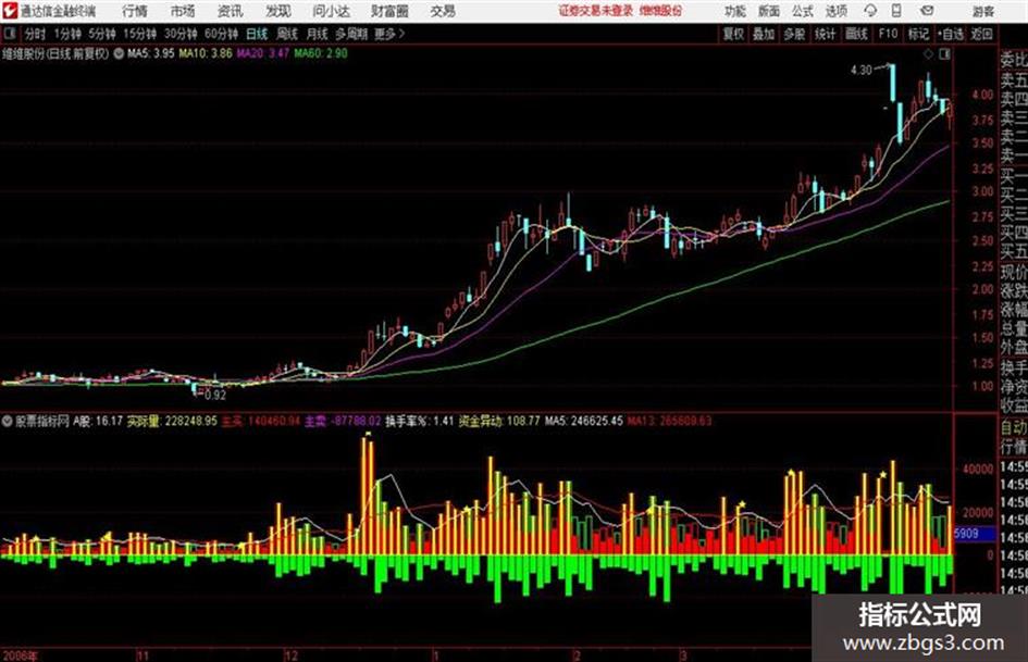 预测量:STICKLINE(IF(DYNAINFO(7)=CLOSE AND DYNAINFO(10)=AMOUNT,VAR1,VAR2),VAR1,0,7,1),COLORGRAY;}