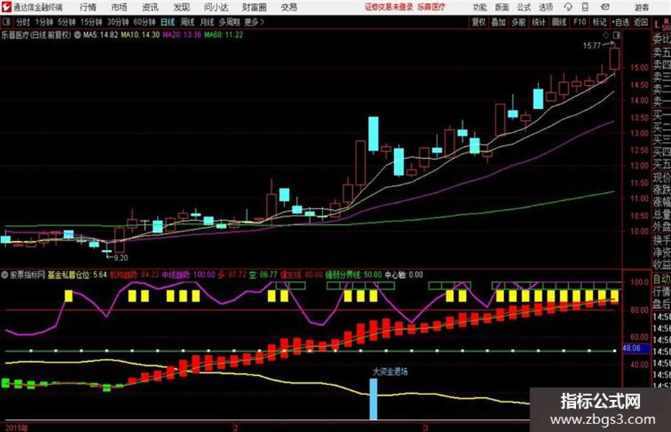 STICKLINE(B1-机构趋势<0,B1,机构趋势,2,0),COLOR00FF00;