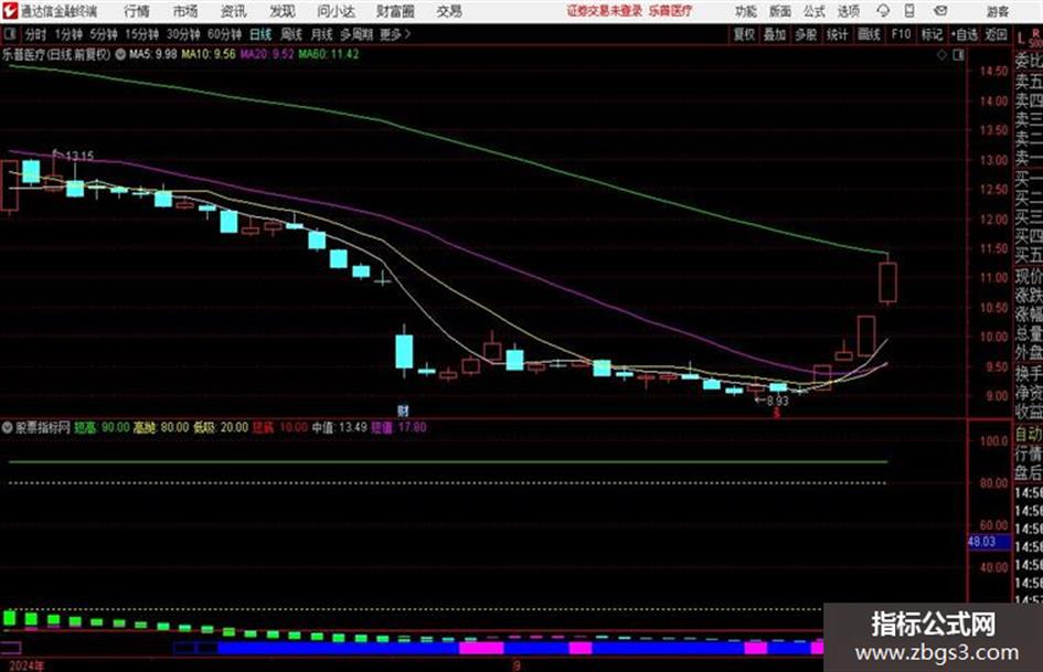 STICKLINE((SK>=90 OR B>=90) AND B< REF(B,1) AND SK< REF(SK,1),96,101,4,1),COLORWHITE;