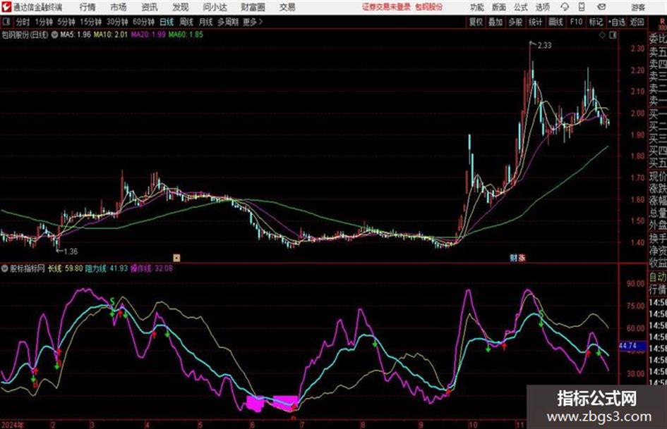 操作线:EMA((CLOSE-VAR2)/(VAR1-VAR2),5)*100,colormagenta,LINETHICK2;