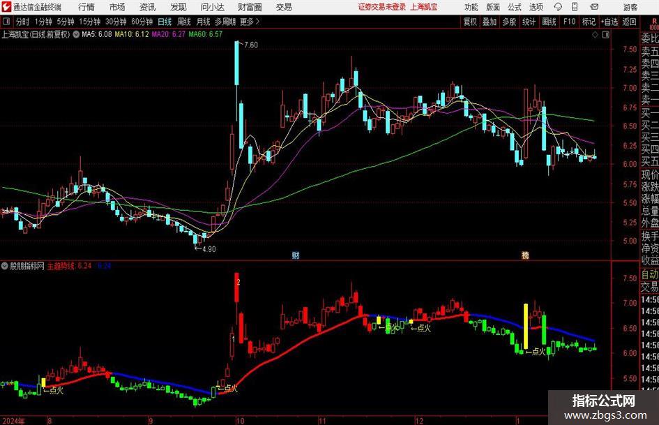IF(B-1,主趋势线,DRAWNULL)COLORBLUE,LINETHICK3;