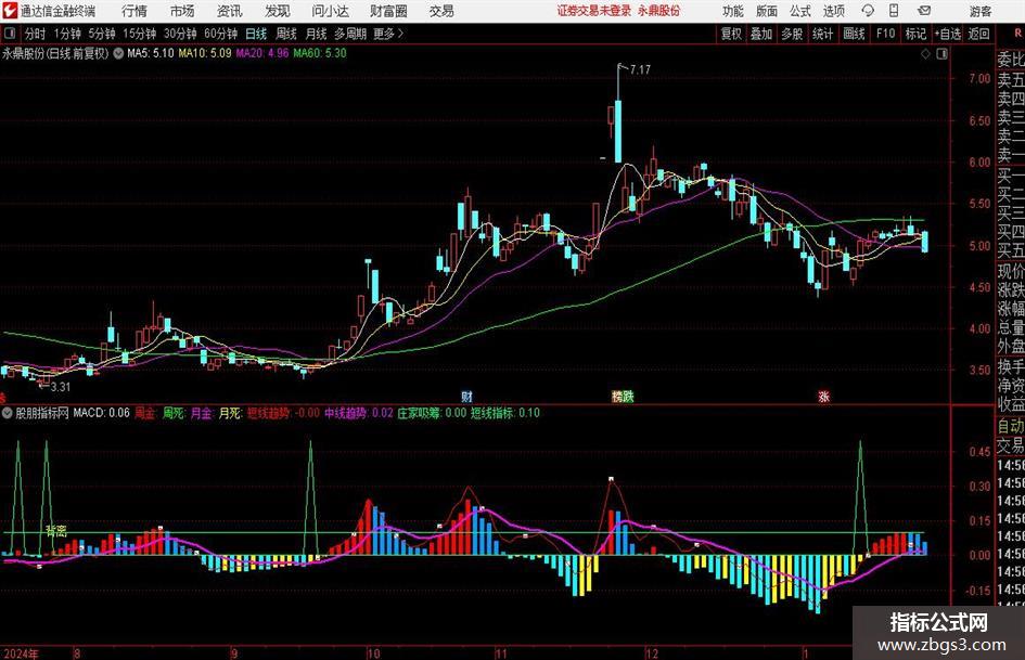 短线指标:IF(((((CROSS(短线趋势,中线趋势) AND (短线趋势 < 0)) AND (中线趋势 < (0 - 0.2))) AND (VAR11 > 45)) AND (VAR16 > 0)),0.3,0.1),COLOR66FF00;