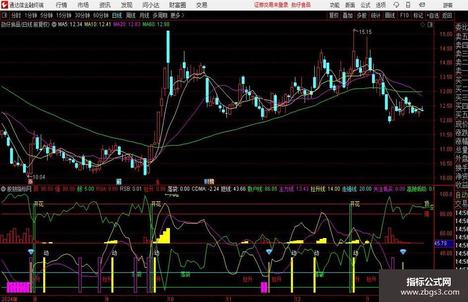 STICKLINE(CDMA>=0 AND CDMA>=REF(CDMA,1),50,50+CDMA,3.3,0),COLORYELLOW ;{粉色拉升资金块}
