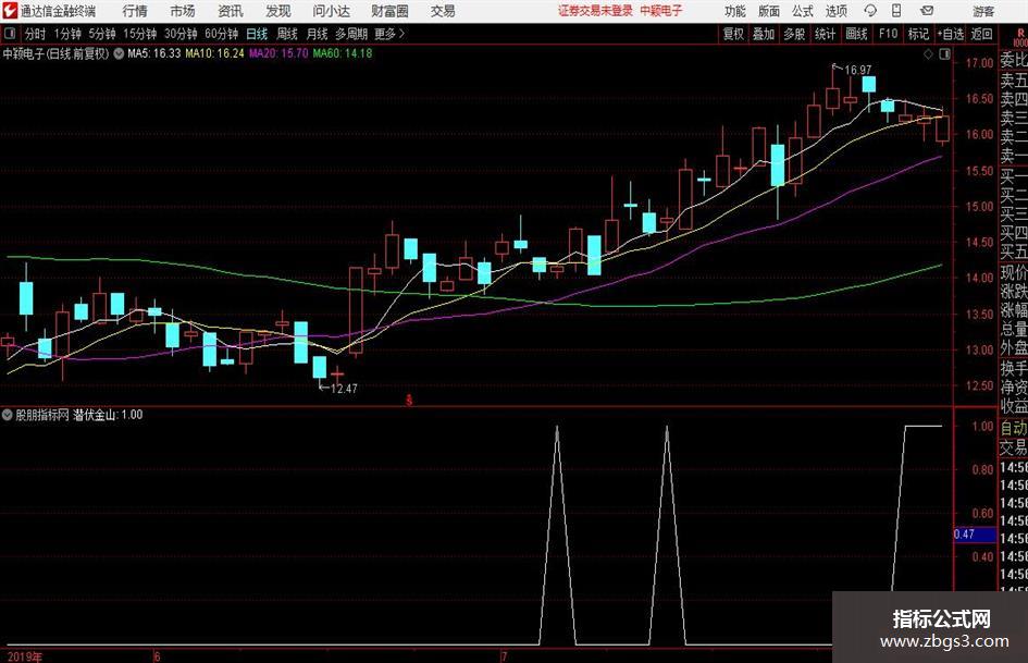 潜伏金山 回调抄底副图预警 源码 通达信 测试图