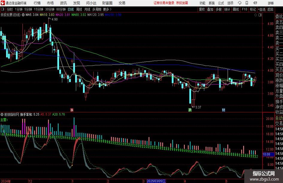 A10:=EMA(换手率和,240)DOTLINE,COLORGREEN;