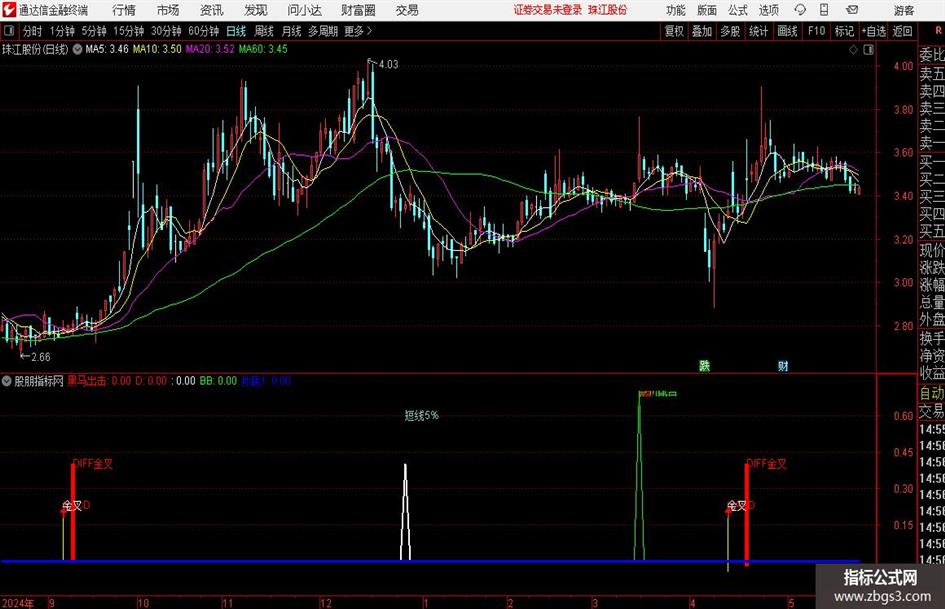 (0.4 * ((CROSS(操盘手,MACD) AND (MACD <= (0 - 0.11))) AND (LOW <= 下))),LINETHICK2,COLORFFFFFF;