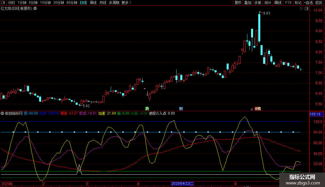 慢速:SMA(VAR2,5,1),COLORRED;