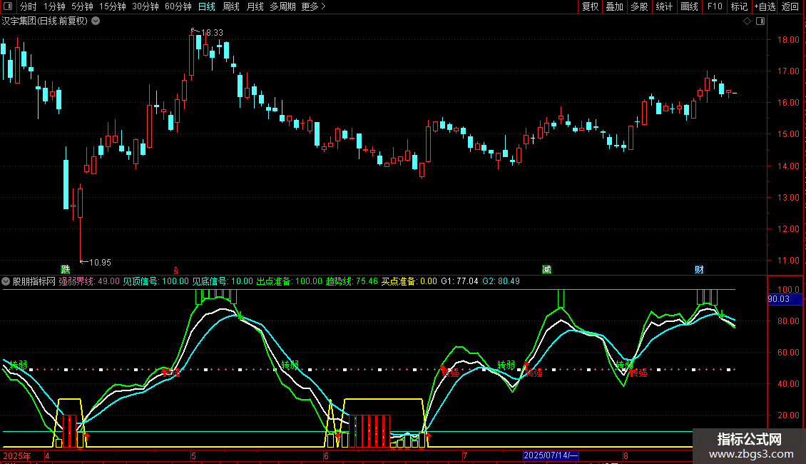 出点准备: IF(CROSS(J2,J1) AND J2>85,70,100),LINETHICK2,COLOR00FF00;