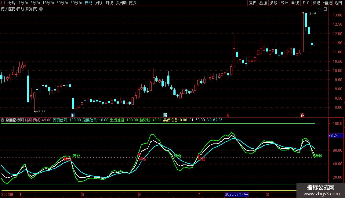 DRAWTEXT(CROSS(49,趋势线),52,'转弱'),COLORGREEN;