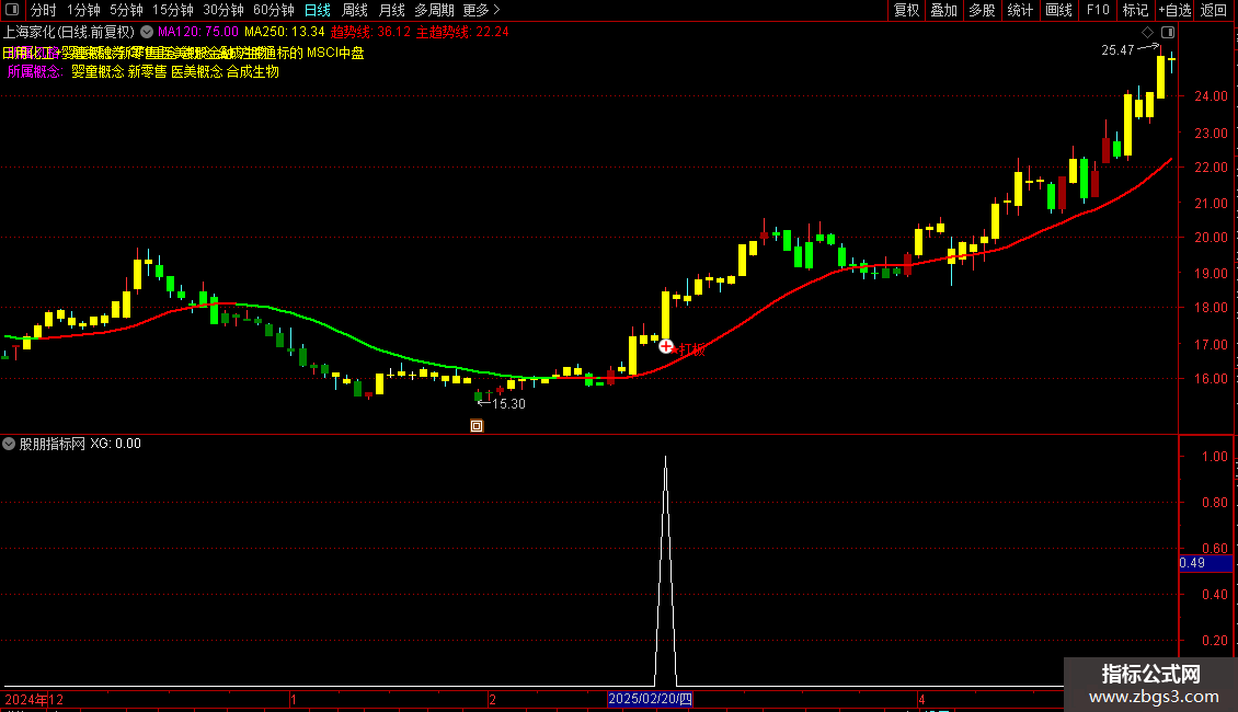 空:IF(ZBGS322-1,主趋势线,DRAWNULL)*ZBGS321,COLOR00FF00,LINETHICK2;