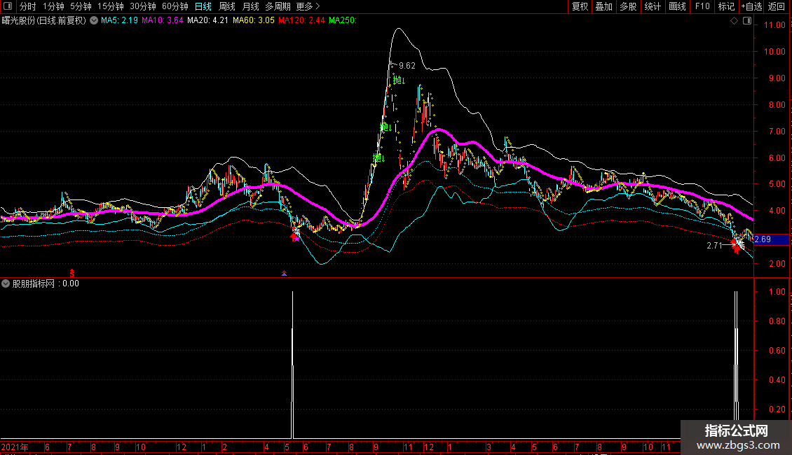 下轨: A1-2*STD(CLOSE,60),COLORCYAN;