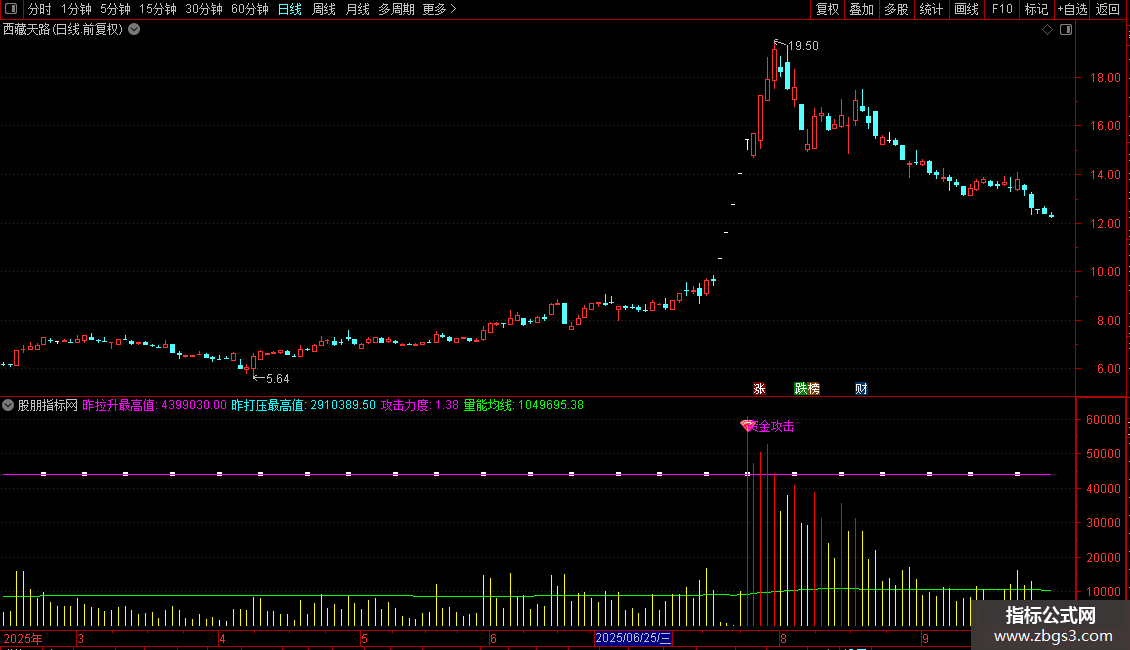 今打压最高值:=CONST(REF(HHV(打压量,FROMOPEN),0)),COLORCYAN;