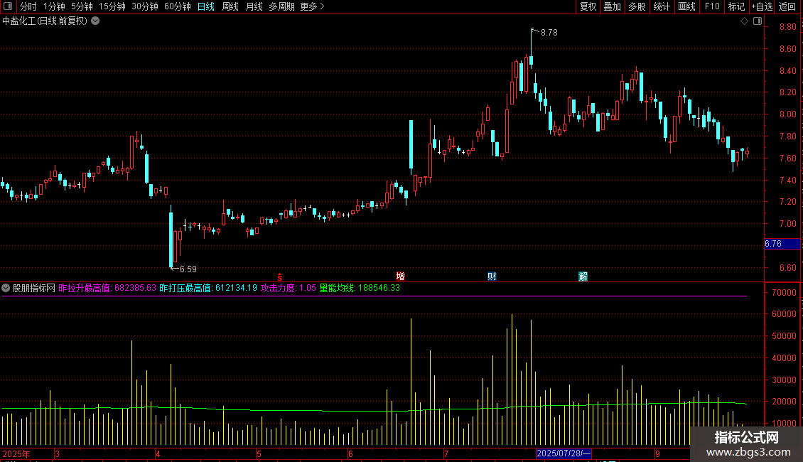 昨打压最高值:CONST(FINDHIGH(打压量,FROMOPEN,240,1)),LINETHICK1,COLORCYAN,NODRAW;