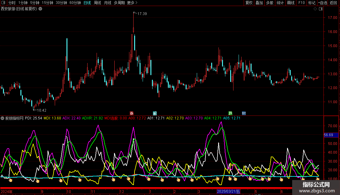XG赋值:PDI<5并且ADX>60,线宽为2,COLOR0000FF