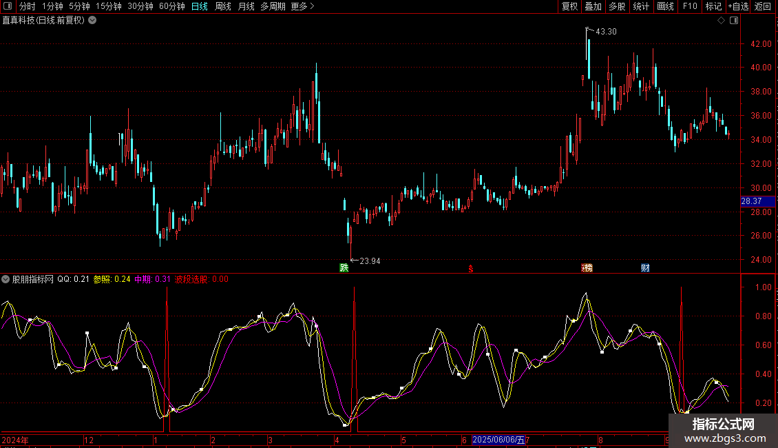 波段选股:RR AND NOT(REF(RR,1)) AND (RR1<-100 AND BB1<-100) AND CB1<-100,COLORRED;