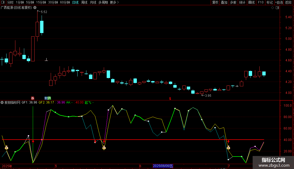 起飞:IF(QF2=QF1,QF2,DRAWNULL)COLORGREEN,LINETHICK2;