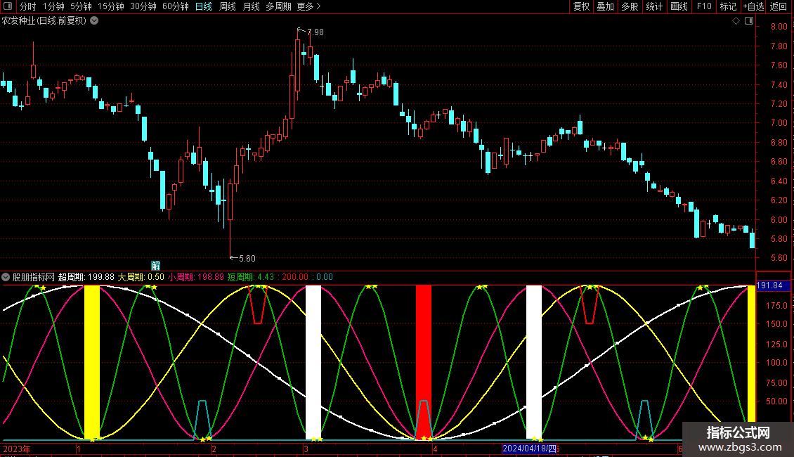 STICKLINE(短周期<5 AND 小周期>195,小周期,短周期,5,0),COLORWHITE;