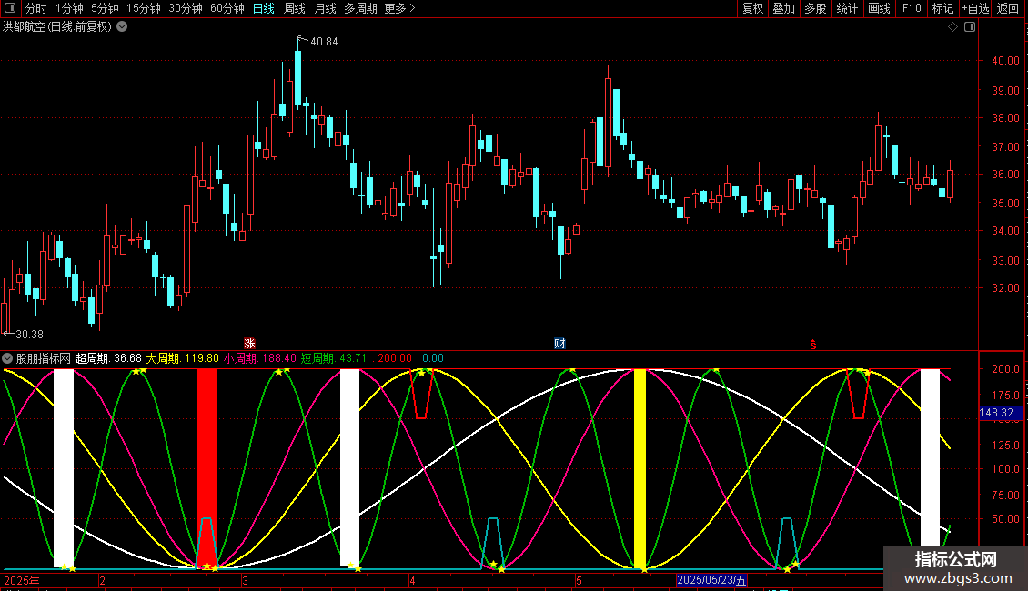 大周期:100-COS(AX/360*(N/6))*100,LINETHICK2,COLORYELLOW;
