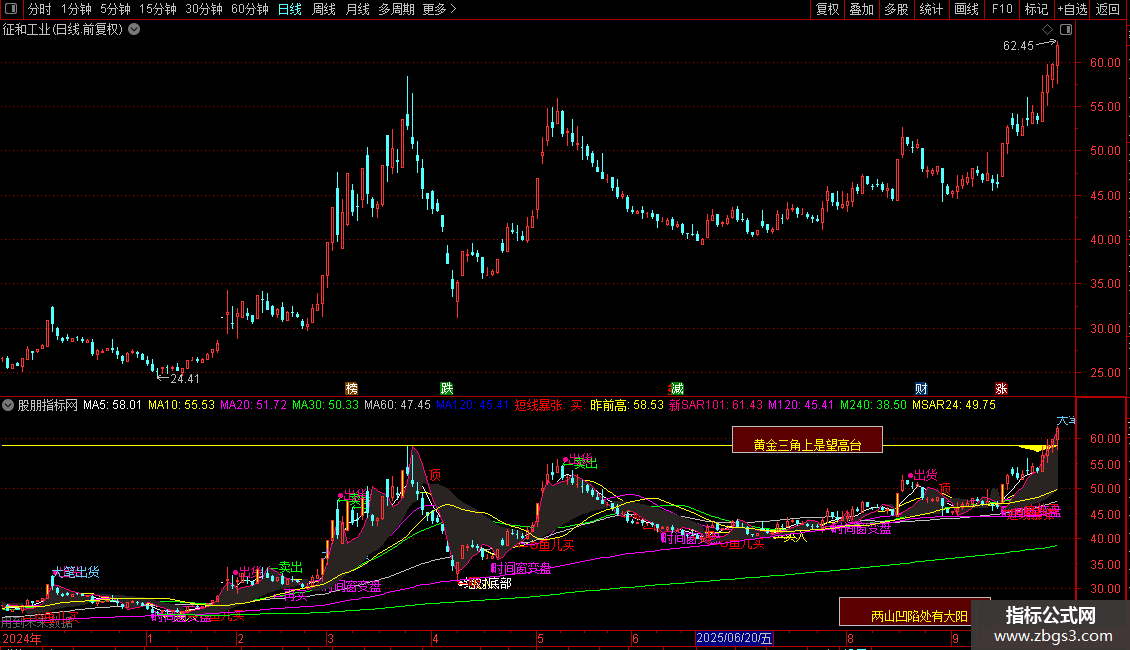 DRAWTEXT_FIX(1,0.70,0.10,0,'黄金三角上是望高台'),COLORYELLOW;