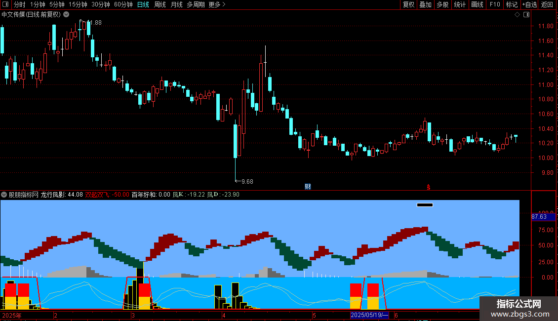 双起双飞:IF(龙行凤影<=10,0,-50),COLOR0000FF,LINETHICK2;