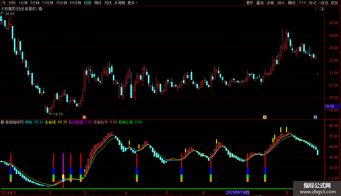 极地上涨:IF(A6,领先,0),COLORGREEN,LINETHICK2;