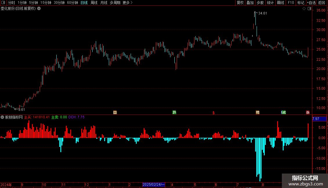STICKLINE(大单动向<0,0,大单动向,2,0),COLORCYAN;