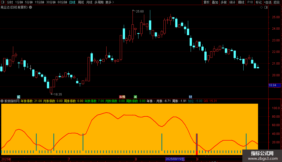 年涨: (CLOSE-REF(C,YEAR))/REF(C,YEAR)*100,POINTDOT,COLORWHITE;