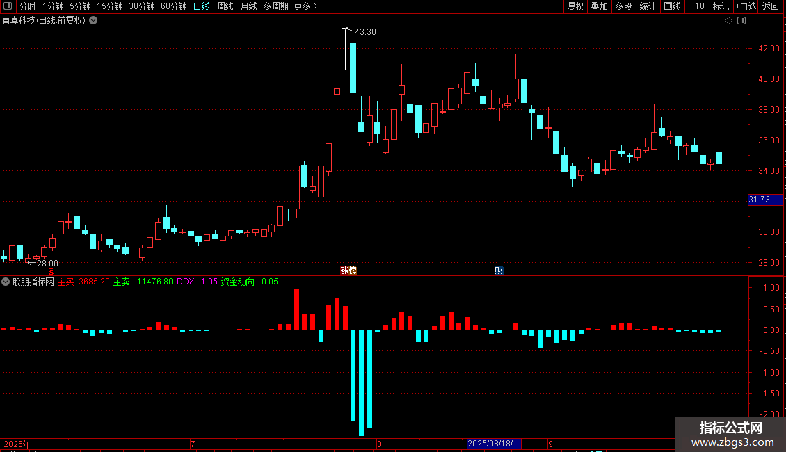 操作思路:单日资金动向在0.00左右盘口为震荡市,突然大倍量翻红为买入机会,大倍量翻绿则为卖出机会,持仓,加减仓参考3日资金方向,红绿柱由大变小有变盘趋势。