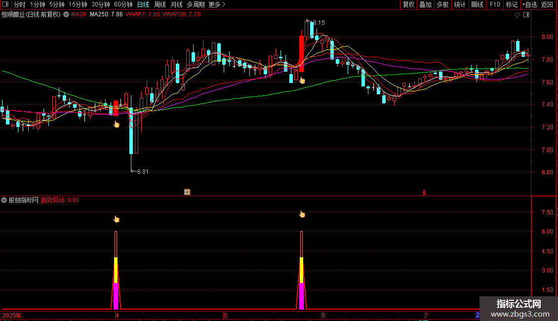 趋势确认:=COUNT(趋势异动>0,3)>=2;